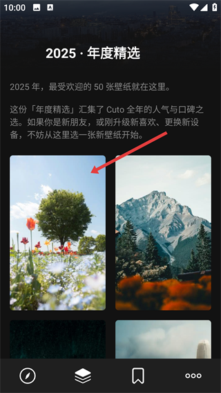 3、进入【2025-年度精选】页面后,挑选喜欢的壁纸并点击,便可进入该壁纸的全屏预览界面。