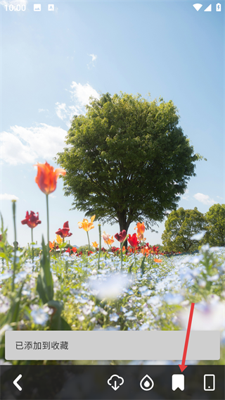 4、在壁纸预览界面,找到底部的【收藏按钮】并点击,页面会提示“已添加到收藏”,这样就完成壁纸的收藏啦。