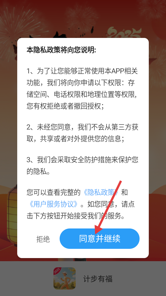 1、在隐私政策弹窗中,点击【同意并继续】,以正常使用APP功能。