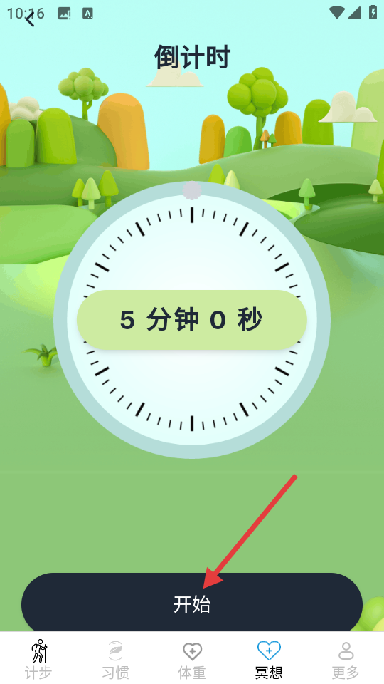 4、选择后进入倒计时界面,点击【开始】,即可进行冥想。