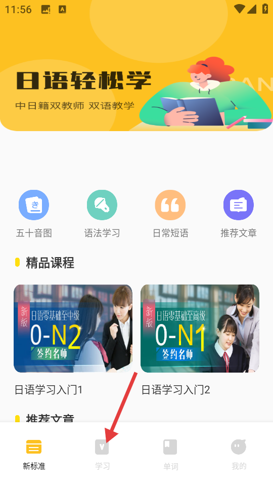 1、在应用首页,点击底部【学习】选项。