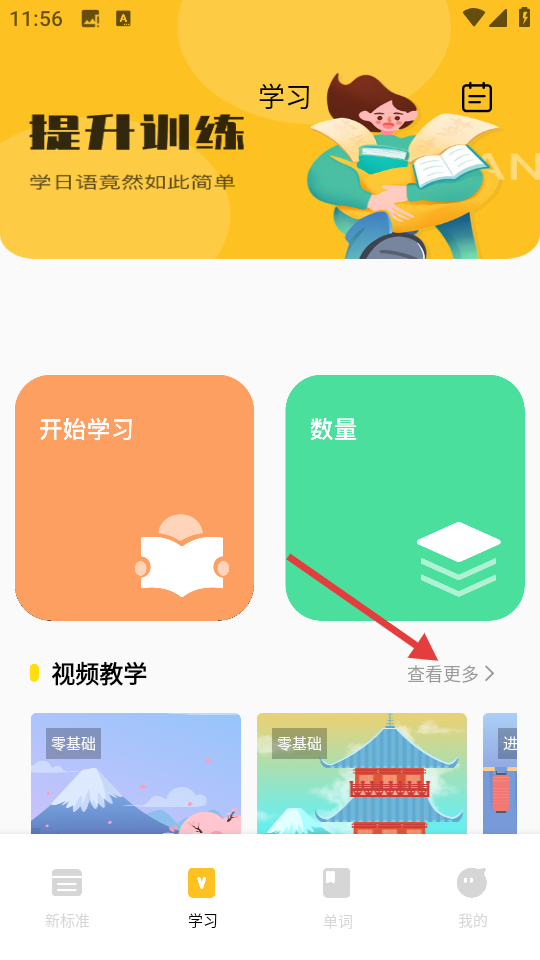 2、进入学习页面后,在视频教学板块点击【查看更多】。