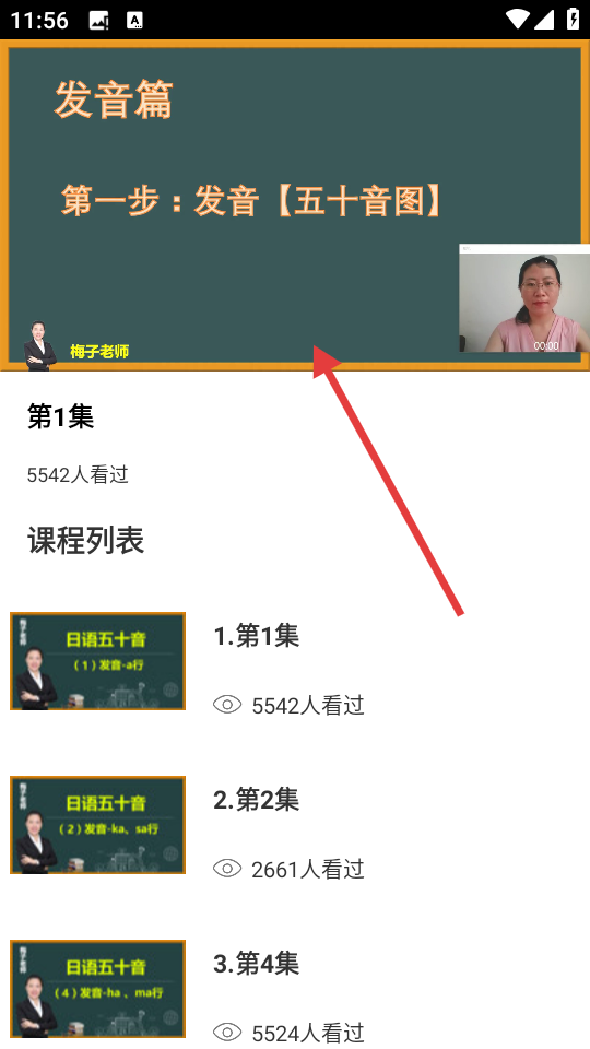4、进入课程后,即可观看日语学习视频。