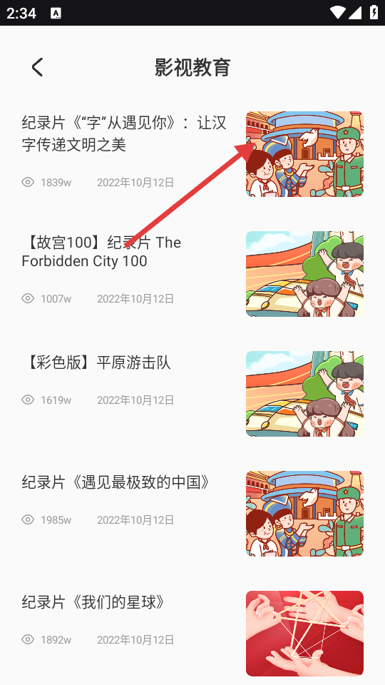 3、进入影视教育页面,选择具体的影视内容。