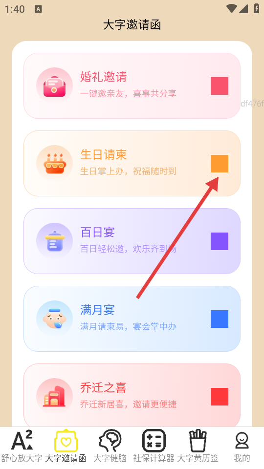 2、在大字邀请函页面,选择【生日请柬】选项。