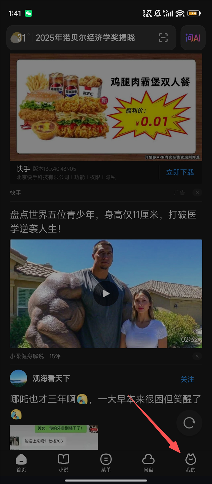 1、打开【UC浏览器】,点击底部【我的】按钮,进入个人功能页面,这是入驻大鱼号的第一步。