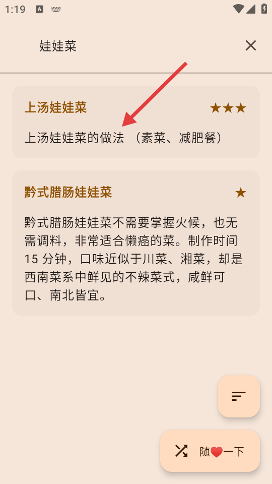 3、在搜索结果中,找到想要了解的菜品,如【上汤娃娃菜】,点击进入。