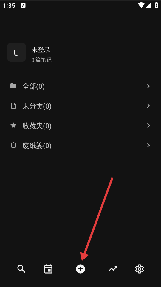 2、若要创建新笔记等操作,点击页面底部中间的“+”号按钮。