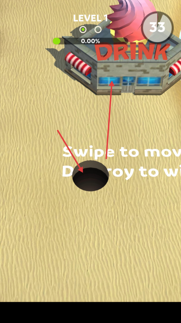 1、滑动屏幕移动黑洞,靠近目标建筑。