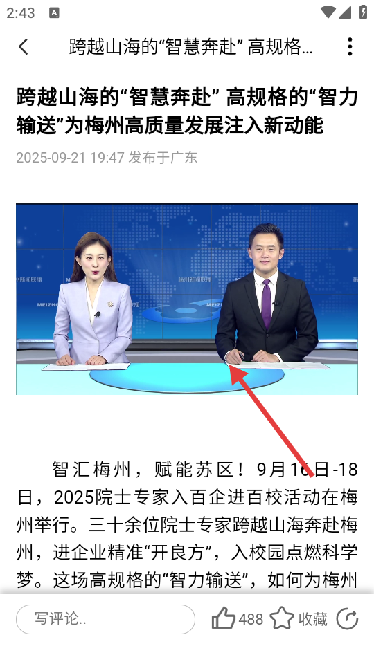 4、在新闻具体页面,可观看新闻解说,还可以进行新闻阅读。
