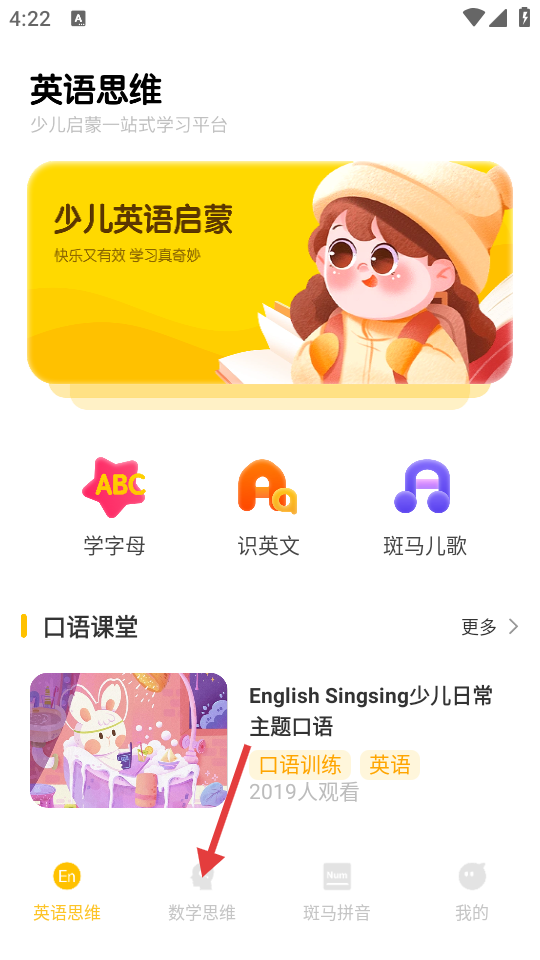1、在APP首页,点击底部【数学思维】选项,进入“数学思维”页面。