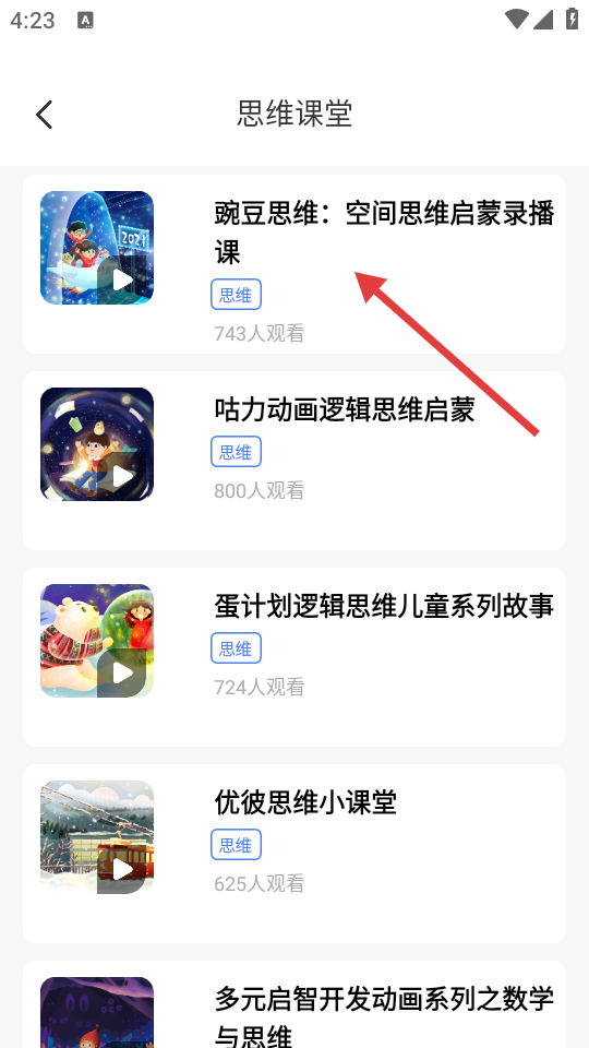 3、在“思维课堂”页面,选择相关录播课,进入课程播放页面。