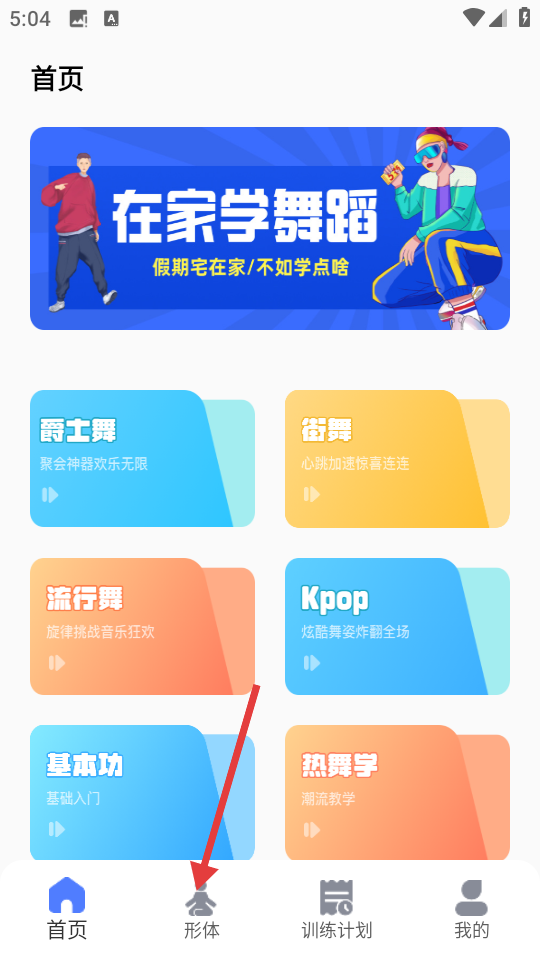 1、在APP首页,点击底部【形体】选项,进入“形体”页面。