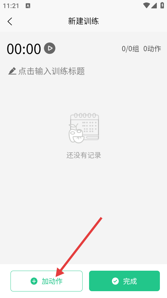 2、进入新建训练页面后,点击【加动作】按钮。