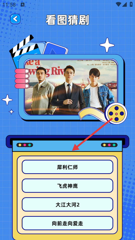4、进入看图猜剧游戏界面,根据展示的影视剧图片,从选项中选择正确的影视剧名称。