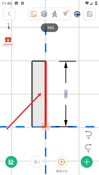 1、点击中间的光标对于墙壁厚度进行设置,拖动光标就能够进行设置。