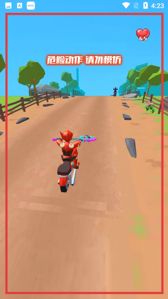2、进入关卡后,长按方框内任意位置操控角色驾驶摩托在道路行驶。