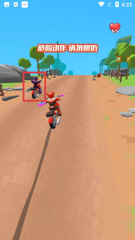 3、行驶中会遇到方框内【摩托对手】,靠近他将会触发攻击,将其击败争取更高排名。