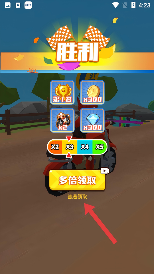 4、成功通关后,会显示【胜利】界面,点击【普通领取】奖励,进入下一关。