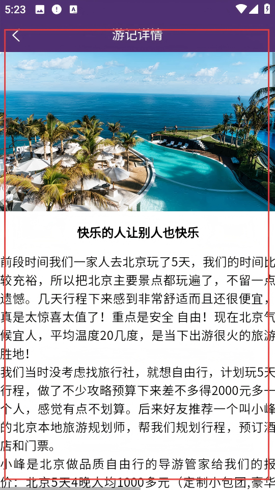 4、点击游记,查看游记详情。