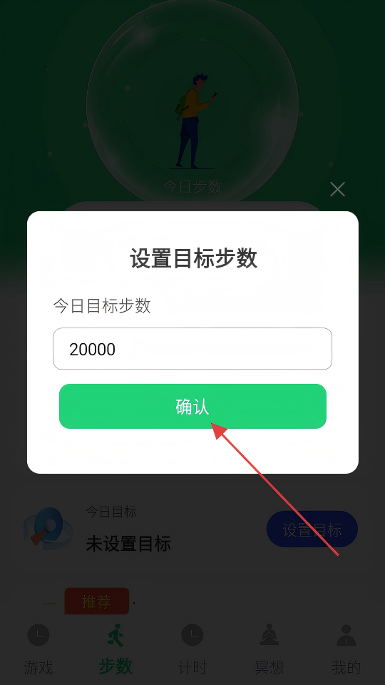 3、在设置目标步数弹窗中,输入今日目标步数,点击【确认】。