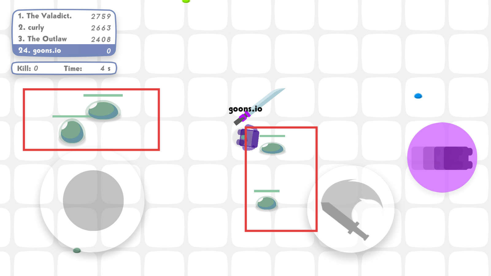 2、进入游戏后,用左侧虚拟摇杆控制角色移动,右侧按钮进行攻击。