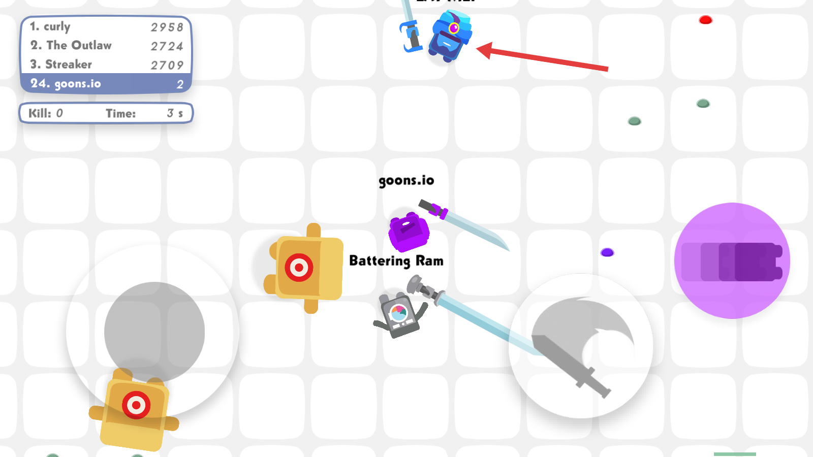 4、遇到其他玩家角色时,注意避开他们或者用下方攻击技能击败对方。
