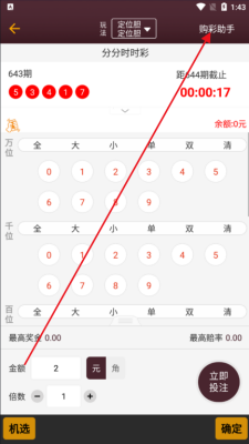 1、界面清晰明了,核心功能一目了然。进入一分快三的投注界面,选择您看好的数字组合,输入您想投注的金额,最后点击确认完成支付。