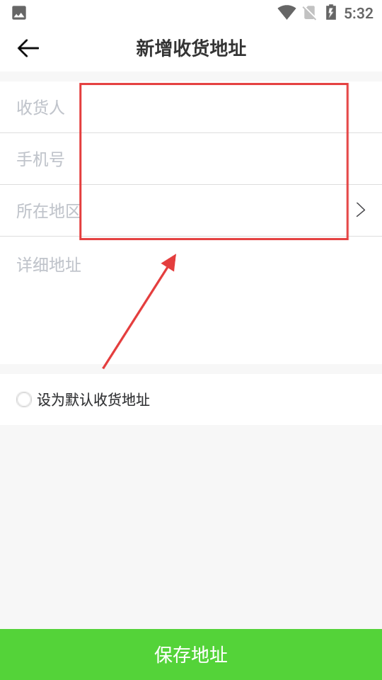 3、点击【新增收货地址】,进入新增收货地址页面。