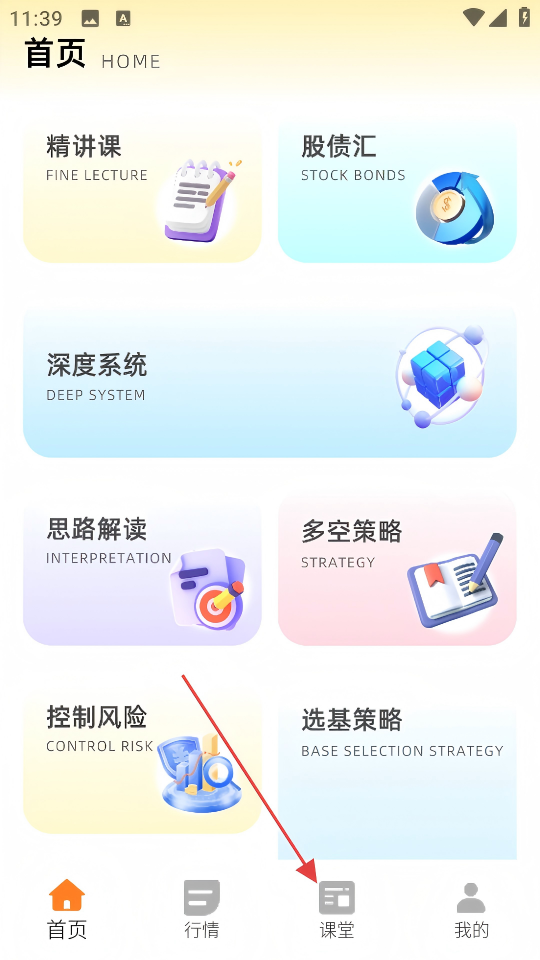 1、打开APP,点击底部【课堂】图标。