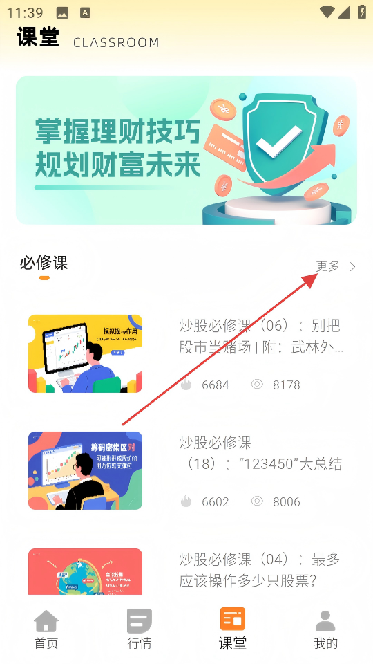2、在课堂页面,点击必修课右侧的【更多】。