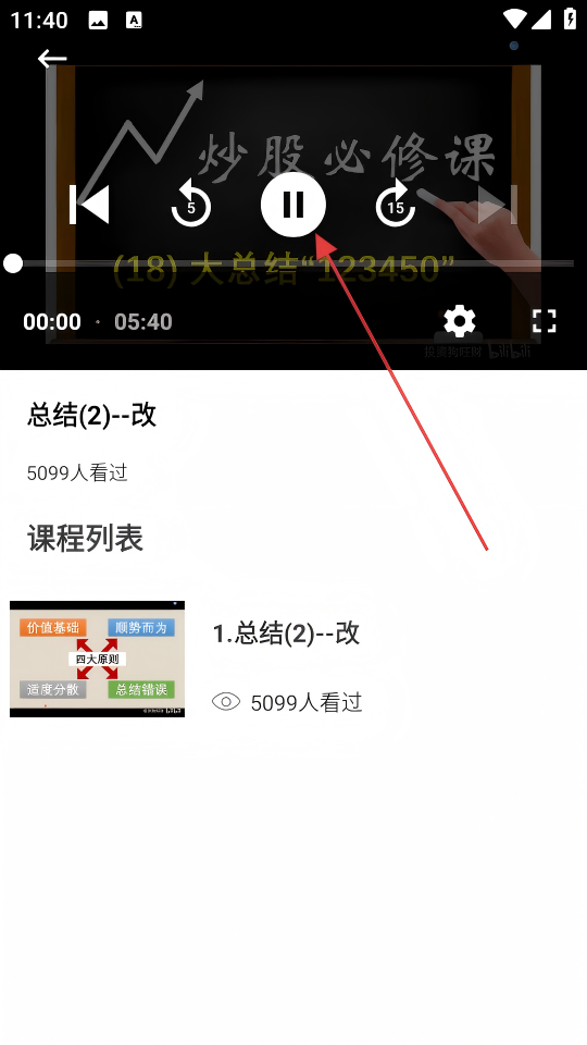 4、进入该课程播放页面,即可观看学习炒股相关课程内容。