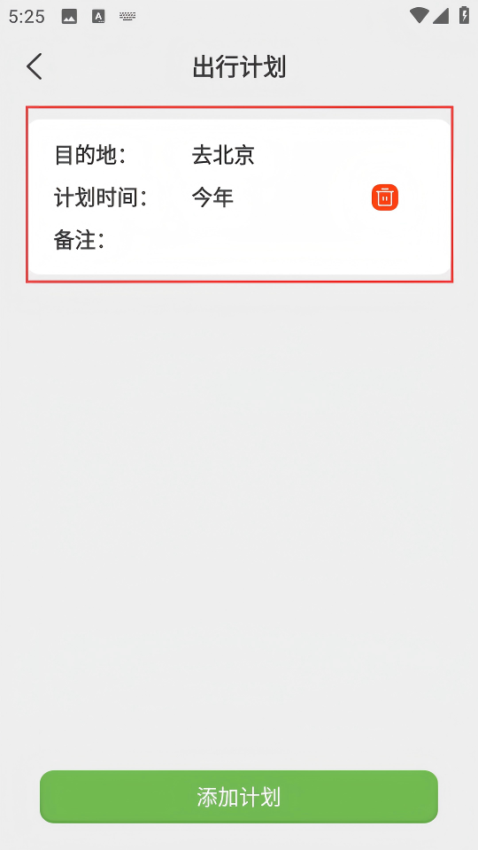 4、出行计划添加成功后,能看到目的地、计划时间等信息。