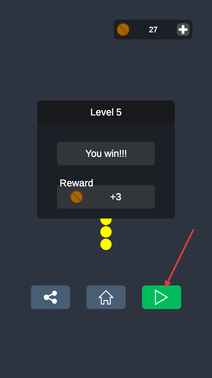 4、关卡胜利后,点击绿色箭头按钮进入下一关。