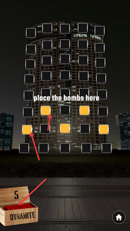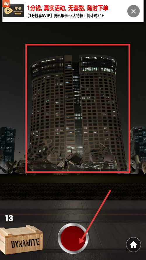 4、点击红色按钮,引爆炸弹摧毁建筑。