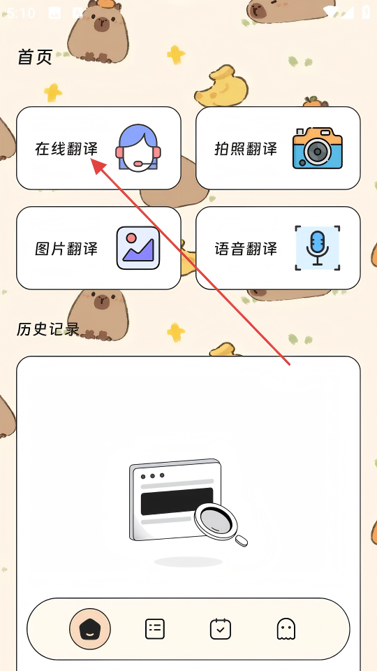 2、进入首页,选择翻译功能,如【在线翻译】。