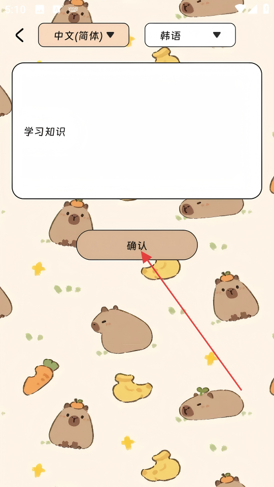 3、在翻译页面,选择源语言和目标语言,输入要翻译的内容,点击【确认】。