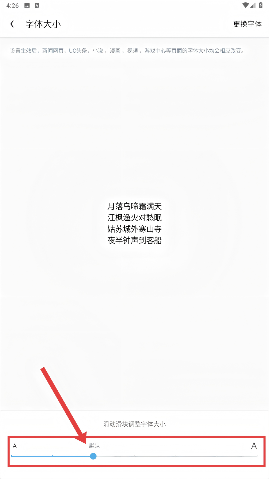 4、到了【字体大小】页面,滑动底部的滑块,就能调整字体大小,让阅读更顺心啦。
