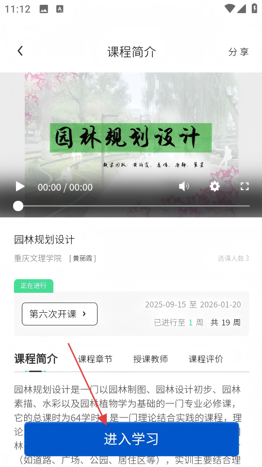 2、进入课程简介页面,查看课程基本信息,点击【进入学习】。