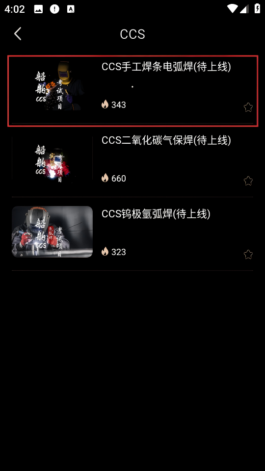3、进入CCS分类页面,选择课程,如【CCS手工焊条电弧焊(待上线)】。