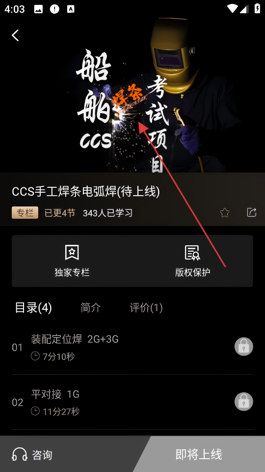 4、进入课程详情页面,可查看课程简介、目录等内容,待课程上线后,即可进行学习。