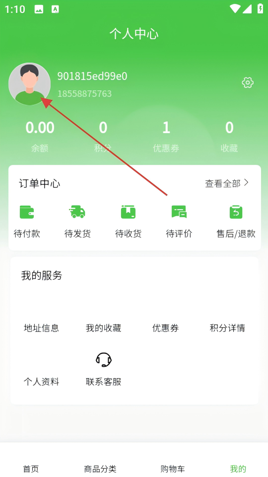 2、进入【个人中心】,点击头像区域进入对应页面。