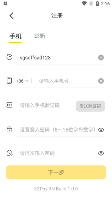 4、最后可以根据手机号或者邮箱进行注册EZPay了。