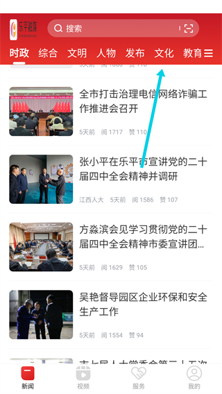 1、在乐平融媒首页,找到【文化】板块,即可浏览文化类资讯,了解乐平文化动态哟。