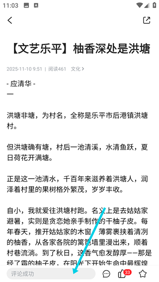 3、阅读完文章后,点击评论框就能输入你对文章的看法,参与讨论吧。