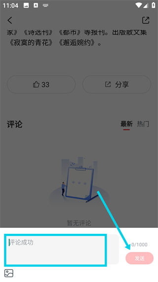 4、在评论框输入内容后,点击【发送】按钮,即可成功发表评论,和其他用户互动交流哦。