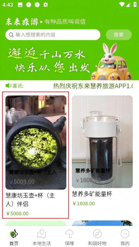1、进入软件,在首页选择心仪商品,如【慧康坊玉壶+杯(主人)伴侣】。
