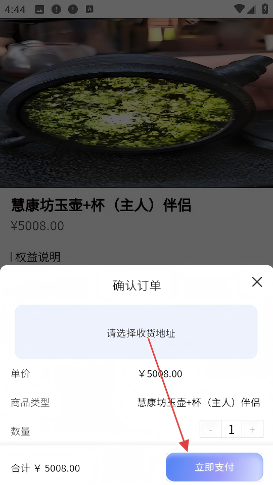 3、在确认订单页面,选择收货地址,核对商品单价、类型等信息后,点击【立即支付】按钮。