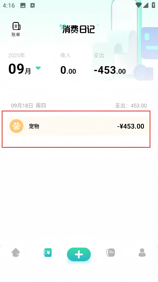 1、进入APP主界面,点击底部中间的【+】按钮,开启记账操作。
