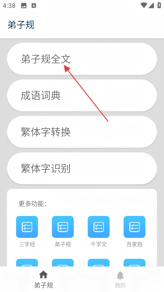 2、进入软件主界面后,点击【弟子规全文】按钮,进入弟子规章节选择页面。